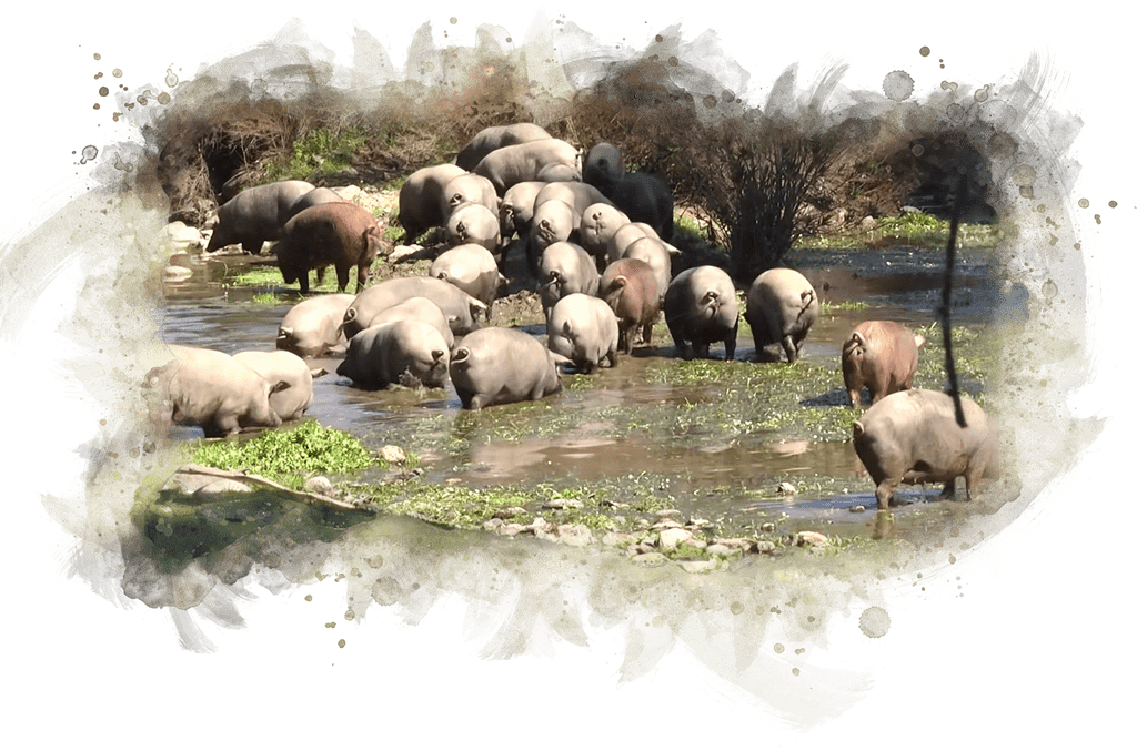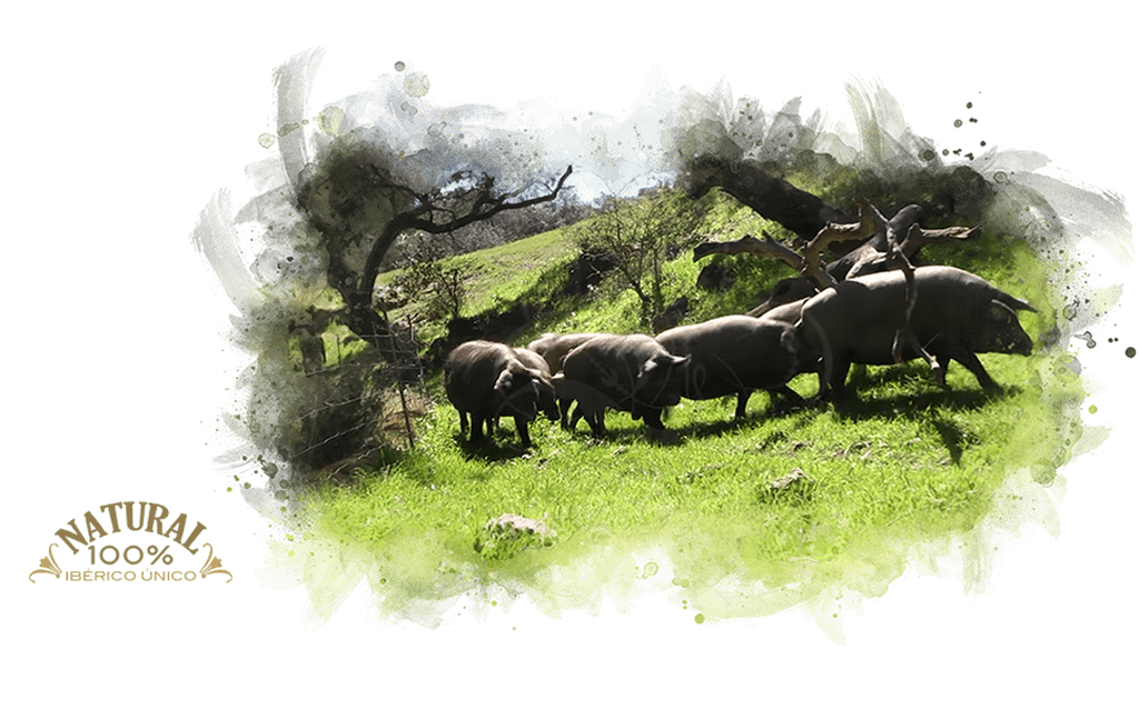 La naturaleza de nuestros sementales de raza 100% ibérica, criados y alimentados en absoluta libertad en las dehesas de Extreadura y el Parque Natural de Aracena y Picos de Aroche, con sus tres tipos de Quercus. La curación en secaderos naturales y la sabiduría de nuestros maestros artesanos hacen posible la elaboración de este manjar selecto y exquisito: nuestro Jamón Ibérico de Bellota. Disfrútelo con calma.
